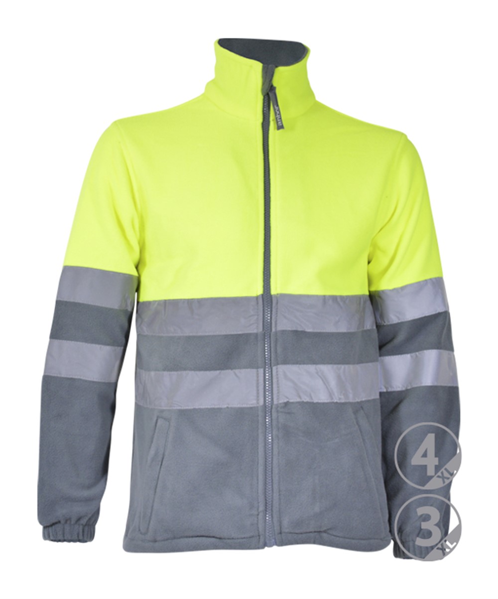 2 faixas refletivas costuradas no tronco e nas mangas