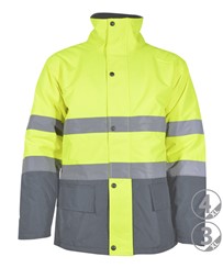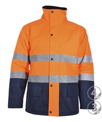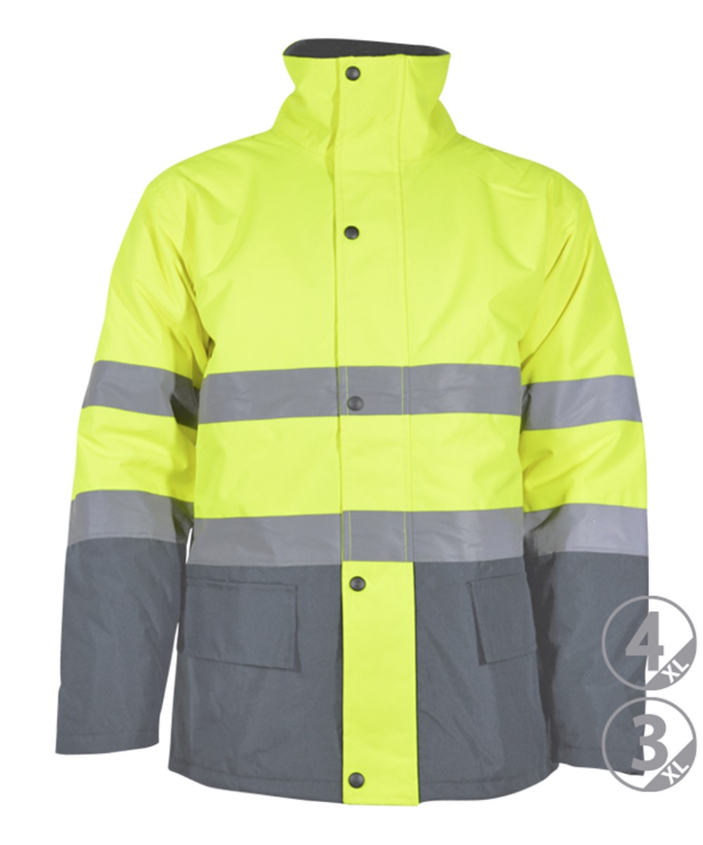 2 faixas refletivas costuradas no tronco e nas mangas